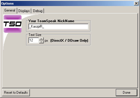 Cała wygoda polegała na wykorzystaniu TeamSpeakOverlay – czyli małego programu który działa przy współpracy z TeamSpeak i wyświetla w grach odpowoednie informacje.