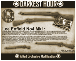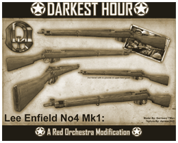 To co widzicie powyżej to piękny Lee Enfield No.4 MkI. Karabin powtarzalny, zasilany nabojem 7.62mm, bardzo popularny w armii brytyjskiej był rezultatem 17 lat prób i wcześniejszych wersji tego karabinu tworzonych przez małe królewskie fabryki wojskowe (RSAF). Na początku (przed wersjami Mk istniały wcześniej jeszcze inne oczywiście ;) powstała wersja oznaczona numerem 1 i symbolem MkV. Później, w 1926 roku po wielu zmianach, bazując na projekcie wcześniejszych wersji (Short Magazine Lee-Enfield) powstał Enfield MkVI z numerem 1. A 8 lat przed wybuchem dwś, z niewieloma zmianami MKVI został przeistoczony w wersję próbną z numerkiem 4. Broń ta była używana jeszcze przez wiele lat po wojnie. Za projekt modelu tej broni odpowiedzialni są Garriadon i Tman, a tekstury wykonał Aeneas2020. W następnej relacji ma być ukazany w akcji.