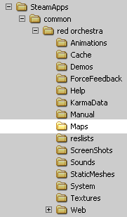 W ostateczności pliki _in/red orchestra/Maps/ powinny wylądować w …/common/red orchestra/Maps/.