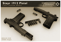W nasze łapki dostaniemy także pistolet Steyr 1912, ładowany odgórnie jak Kar98 ośmiu nabojowym magazynkiem z amunicją 9mm.